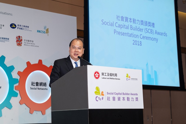 壓軸環(huán)節(jié)為社會(huì)資本動(dòng)力獎(jiǎng)?lì)C獎(jiǎng)禮,由政務(wù)司司長(zhǎng)張建宗先生,GBS,JP蒞臨主禮,表?yè)P(yáng)卓越基金計(jì)劃、協(xié)作伙伴,以及對(duì)建立社會(huì)資本有重要貢獻(xiàn)的機(jī)構(gòu)和人士。