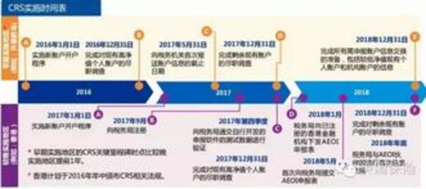 2017年1月1日,完成對(duì)新客戶開戶流程的改造,對(duì)于2017年1月1日以后的新開戶客戶,可以通過盡職調(diào)查程序識(shí)別出其中的非居民賬戶。2017年12月31日前,完成對(duì)高凈值(在2016年12月31日金融賬戶加總余額大于100萬美金)存量個(gè)人客戶的盡職調(diào)查程序,識(shí)別其中的非居民賬戶。2018年6月30日前(預(yù)計(jì)),完成向國稅總局的首次信息報(bào)送,并在以后年度每年定期向國稅總局進(jìn)行信息報(bào)送。2018年9月30日前,中國將與其他參與 CRS 的轄區(qū)完成首次轄區(qū)間的信息交換,以后年度也將每年定期進(jìn)行轄區(qū)間的信息交換。2018年12月31日前,完成對(duì)其余所有存量客戶的盡職調(diào)查程序,識(shí)別其中的非居民賬戶。