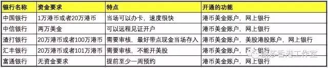 中國銀行,中信銀行,渣打銀行,匯豐銀行,富邦銀行(沒有資金要求,只限內(nèi)部預約)。其中中信銀行可以在國內(nèi)指定分行可以見證開戶,富通銀行對資金沒有要求,但是只限內(nèi)部提前預約,具體區(qū)別整體如下: