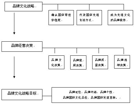 經(jīng)濟全球化必然伴隨品牌國際化。國際化的品牌必須跨越區(qū)域、國家、文化、意識形態(tài)的差異,為不同生活背景下的消費者所接受。這就需要塑造與不同文化、亞文化相兼容的品牌文化。它可以借助CIS(企業(yè)形象識別系統(tǒng))等品牌規(guī)范工具,整合品牌形象國際化元素來體現(xiàn),最終實現(xiàn)與國際公眾有效的心理溝通。