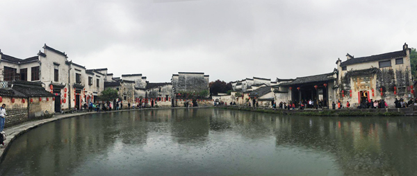此行我們首站到達了歷史悠久的宏村,這里沉淀了徽派古老的文化底蘊。來宏村之前導游說,在這里隨手拍都可以做壁紙,之前也聽過看過太多的宏村的圖片,我們對于這個小村莊心生向往已久。宏村被譽為“中國畫里的鄉(xiāng)村”,聯(lián)合國專家稱贊它為“舉世無雙的小城鎮(zhèn)水街景觀”。因為它背倚黃山余脈羊棧嶺、雷崗山,地勢較高,有時云蒸霞蔚,如濃墨重彩,有時似潑墨寫意,四周山色與粉墻青瓦倒映湖中,人、古建筑與大自然融為一體,好似一幅徐徐展開的山水畫卷。