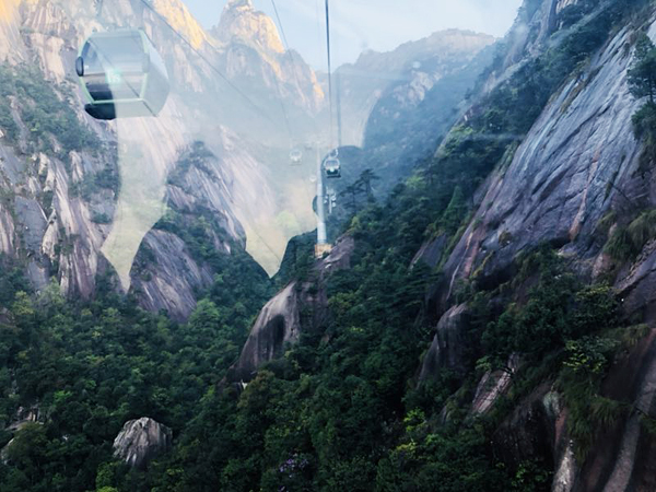 第二天,我們早早的吃過早飯后開始了登山之行,通過慈光閣乘坐了纜車,登高遠眺黃山之景,感嘆大自然的神奇,真是巧奪天工,幾張全景仍無法盡述我們眼前的美景。