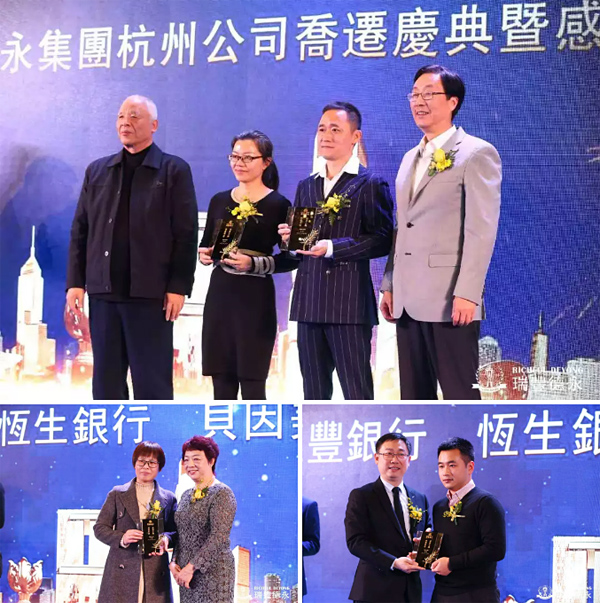 1月18日,瑞豐德永集團(tuán)在杭州洲際酒店舉行了盛大而隆重的杭州公司喬遷慶典暨感恩答謝晚宴。浙港兩地各級政府領(lǐng)導(dǎo)、各商會會長、戰(zhàn)略合作伙伴、商業(yè)翹楚和行業(yè)領(lǐng)袖、國際友人共同見證了喬遷儀式的盛大開啟并出席了當(dāng)晚答謝晚宴。