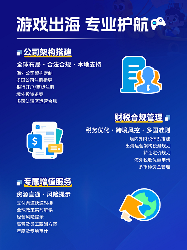 我們的服務(wù)貫穿企業(yè)生命周期。從企業(yè)初期部署開始——海外公司設(shè)立、架構(gòu)構(gòu)建、運(yùn)營(yíng)——到企業(yè)業(yè)務(wù)增長(zhǎng)——再到企業(yè)上市前中后期的各個(gè)階段。我們服務(wù)過大量客戶,具備處理復(fù)雜跨境業(yè)務(wù)的豐富經(jīng)驗(yàn)和實(shí)力。無論是初創(chuàng)團(tuán)隊(duì)還是成熟巨頭,RICHFUL瑞豐憑借其全球視野、本地經(jīng)驗(yàn)、一站式解決方案,致力于成為游戲企業(yè)揚(yáng)帆出海的可靠導(dǎo)航者與堅(jiān)實(shí)后盾。