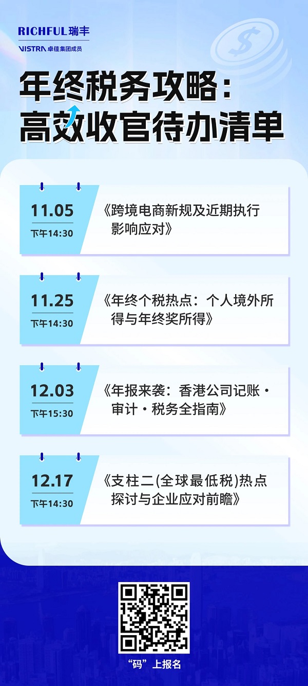 掃描下方海報(bào)二維碼 一鍵報(bào)名多場年終稅務(wù)研討會