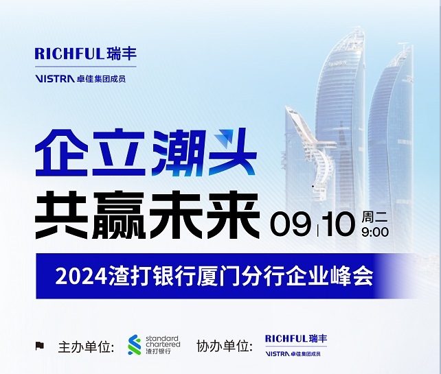 9月10日,RICHFUL瑞豐受邀參加的“2024外資銀行企業(yè)峰會”活動在廈門安達(dá)仕酒店成功舉行。現(xiàn)場企業(yè)家們共同探討中企出海所面臨的機遇與挑戰(zhàn),助力企業(yè)“企立潮頭,共贏未來”。