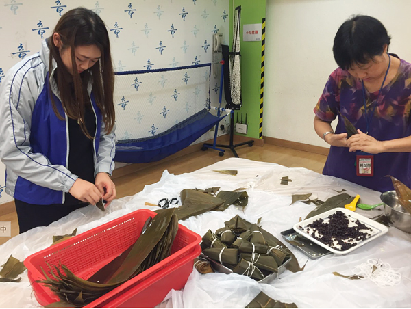 瑞豐德永的義工向教導(dǎo)學(xué)習(xí)包粽子