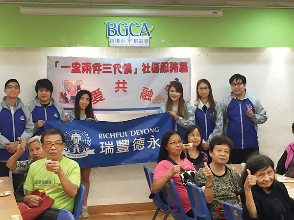 年長一輩都喜歡到茶樓飲茶吃點(diǎn)心,但能吃到人手制作點(diǎn)心的茶樓都已經(jīng)越來越少見。為了讓長者們能重拾昔日茶樓的回憶,瑞豐德永繼續(xù)贊助小童群益會經(jīng)費(fèi),并派出義工團(tuán)協(xié)助制作點(diǎn)心,并和小朋友合力為長者們送上一點(diǎn)心意。