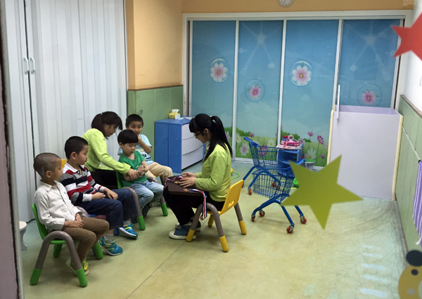 我們來到機(jī)構(gòu)會(huì)議室,熱情的李老師為我們介紹了自閉癥這種疾病 ,自閉癥這種病癥病因不清,無法篩查無法預(yù)防,到1-2歲時(shí)才有明顯癥狀,不過68:1的發(fā)病率還是讓我們吃了一驚,這表示“星星們”就在離我們不遠(yuǎn)的地方。大家認(rèn)真聽取了自閉癥早期訓(xùn)練的好處,以及社會(huì)、家庭對(duì)自閉癥群體包容、引導(dǎo)、教育的責(zé)任,呼吁全社會(huì)都來關(guān)愛這個(gè)群體。