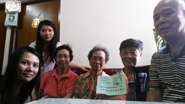 這些長(zhǎng)者有些是獨(dú)居的,有些是行動(dòng)不便的,還有些則是親屬不常在身邊的。我們陪長(zhǎng)者聊天,在聊天的過(guò)程中,了解他們的日常生活起居和飲食習(xí)慣等。希望通過(guò)聊天了解到是否有什么地方需要特別幫助的,再反映給長(zhǎng)者鄰舍中心的義工以便他們跟進(jìn)。長(zhǎng)者們知道我們要上去探訪他們,都非常高興,一早就站在門(mén)外等待我們的到來(lái)。