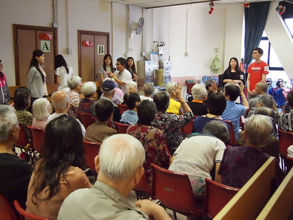 同事們還特意安排了一些節(jié)目,例如:唱歌,做動作引導長者們猜謎語,拋氣球等,讓老人們通過這些小游戲舒展筋骨。