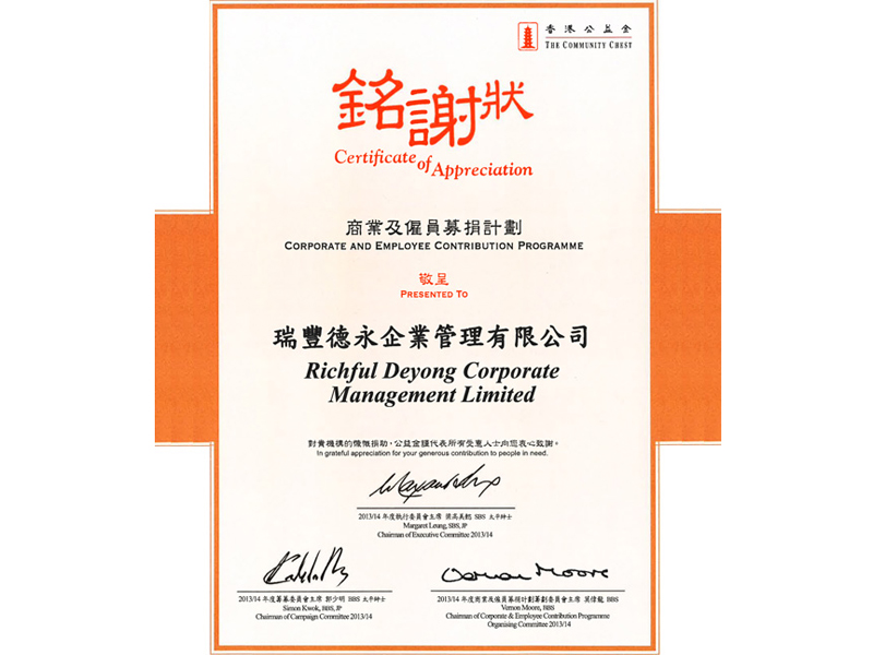 瑞豐德永一向熱心參與公益慈善活動(dòng),造福社群。瑞豐德永全力支持今次籌款活動(dòng),為香港公益金籌募善款,讓瑞豐德永展開(kāi)新里程的同時(shí),回饋社會(huì),資助本地社會(huì)福利服務(wù),與有需要人士分享成果。