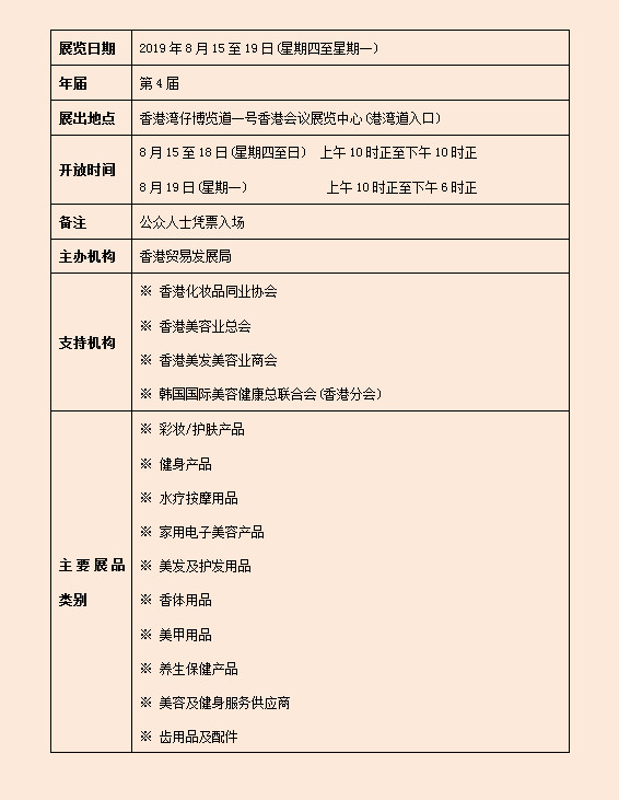 在美容及健康產(chǎn)品的龐大市場(chǎng)需求帶動(dòng)下,香港貿(mào)發(fā)局美與健生活博覽為業(yè)界提供一個(gè)理想平臺(tái),向公眾展示趨時(shí)產(chǎn)品,并借此機(jī)會(huì)與消費(fèi)者互動(dòng),提高品牌知名度,并推出新產(chǎn)品。2018年展會(huì)匯聚超過(guò) 100家展商,涵蓋化妝品、護(hù)膚產(chǎn)品、護(hù)發(fā)用品及保健產(chǎn)品等。博覽與香港貿(mào)發(fā)局美食博覽、香港貿(mào)發(fā)局香港國(guó)際茶展及香港貿(mào)發(fā)局家電.家品.博覽同期舉行,2018年合共吸引510,000名參觀人士。