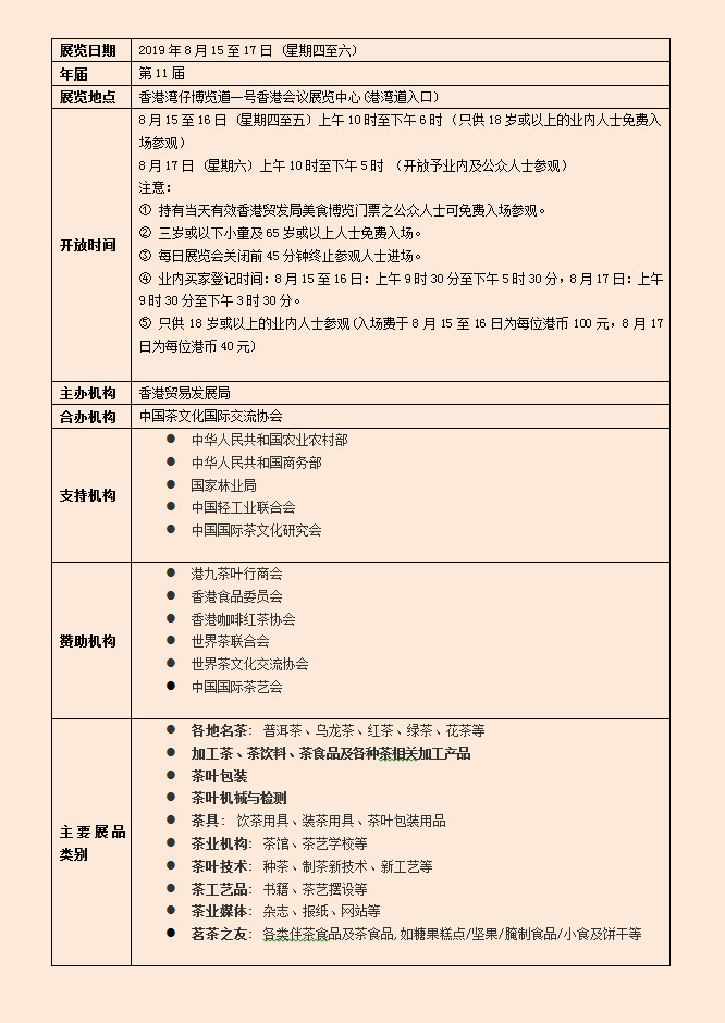 ? ? ? 香港貿(mào)發(fā)局香港國(guó)際茶展是亞洲區(qū)內(nèi)領(lǐng)先的茶葉及相關(guān)產(chǎn)品商貿(mào)平臺(tái)。2018年茶展匯聚超過(guò)250家來(lái)自10個(gè)國(guó)家及地區(qū)的參展商,并吸引逾16,000名業(yè)內(nèi)買(mǎi)家進(jìn)場(chǎng)參觀采購(gòu)。
