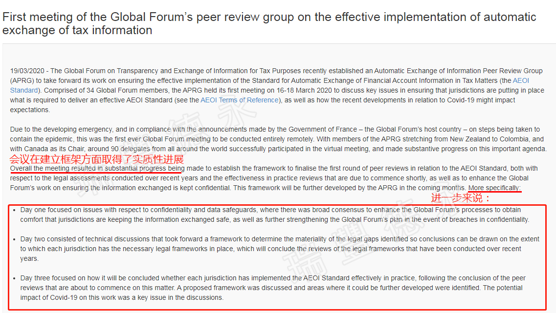 在2020年3月,為了加強稅務(wù)、信息交換透明度,OECD全球論壇成立了一個自動信息交換對等審查小組(APRG),用來監(jiān)督100多位加入CRS協(xié)議的國家和地區(qū)是否落實AEOI標(biāo)準(zhǔn)。