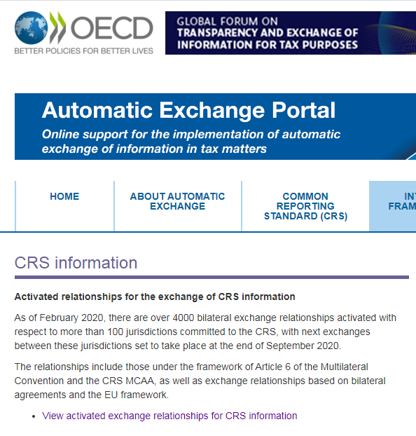 若要查詢各成員之間CRS交換信息的生效或激活日期可在OECD官網(wǎng)