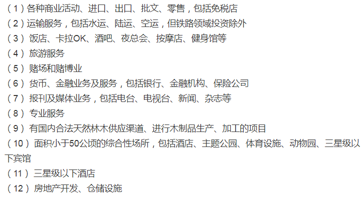 限制投資的領(lǐng)域