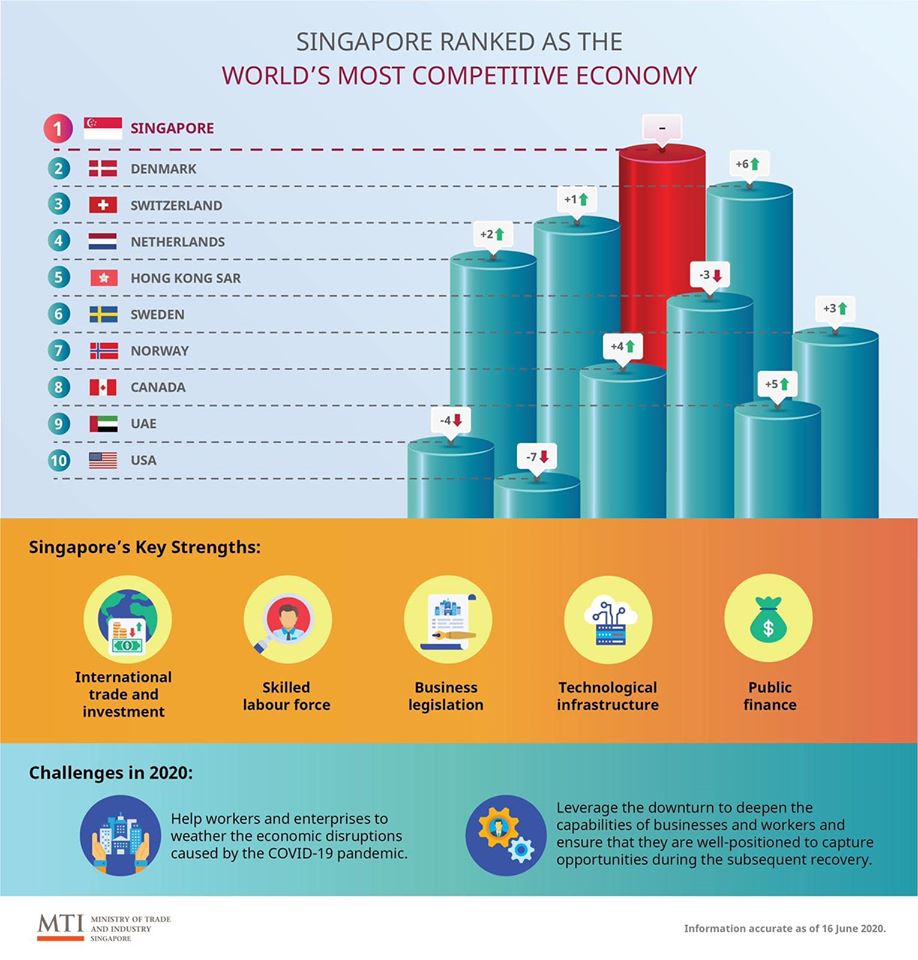 根據(jù)國際管理發(fā)展協(xié)會(huì)(IMD)的世界競爭力排名,新加坡已連續(xù)第二年位居全球最具競爭力的經(jīng)濟(jì)體。IMD的報(bào)告著眼于各國的競爭力,或?yàn)閲竦母l砀偁幒途S持長期經(jīng)濟(jì)增長的能力。今年的排名來自2019年的統(tǒng)計(jì)數(shù)據(jù)和2020年2月至4月的調(diào)查數(shù)據(jù)。