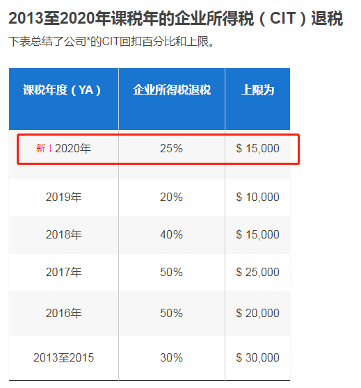 根據(jù)新加坡稅務(wù)局官網(wǎng)的公示,自2020課稅年度起,針對(duì)新加坡居民企業(yè),其所得稅免稅與退稅措施更新如下: