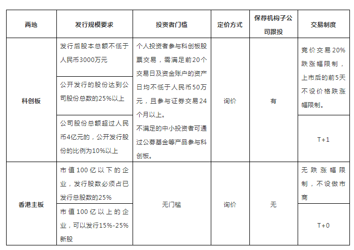 這些條件的放寬也使科創(chuàng)板進(jìn)一步與港股和納斯達(dá)克市場(chǎng)的機(jī)制靠攏,但是依舊存在一定的差異,我們拿港交所來(lái)進(jìn)行對(duì)比: