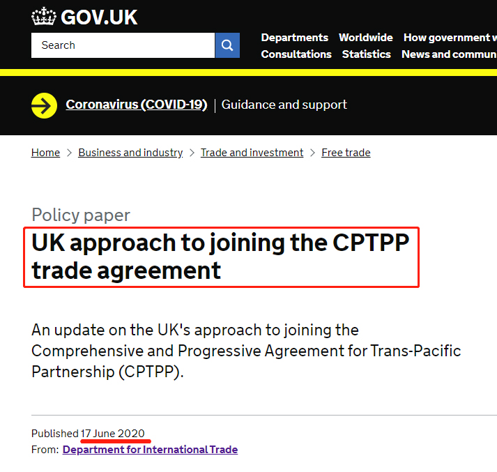 6月17日,英國(guó)政府在其官網(wǎng)宣布,將尋求加入 “全面與進(jìn)步跨太平洋伙伴關(guān)系協(xié)定”(CPTPP),也就是美國(guó)“退群”后的TPP。