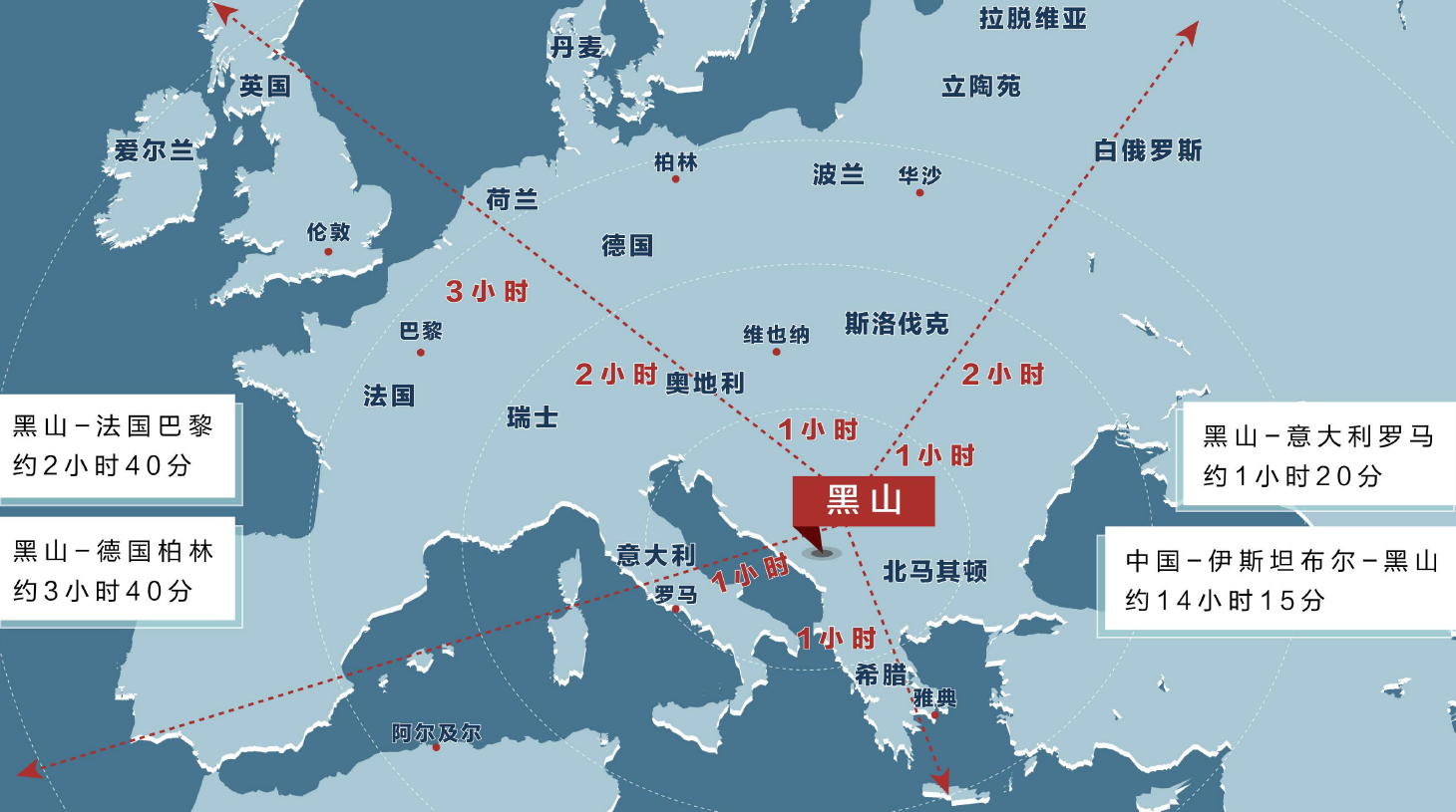 黑山毗鄰地中海,所處歐洲東南部,4小時(shí)的飛行圈幾乎可涵蓋歐洲所有國(guó)家。