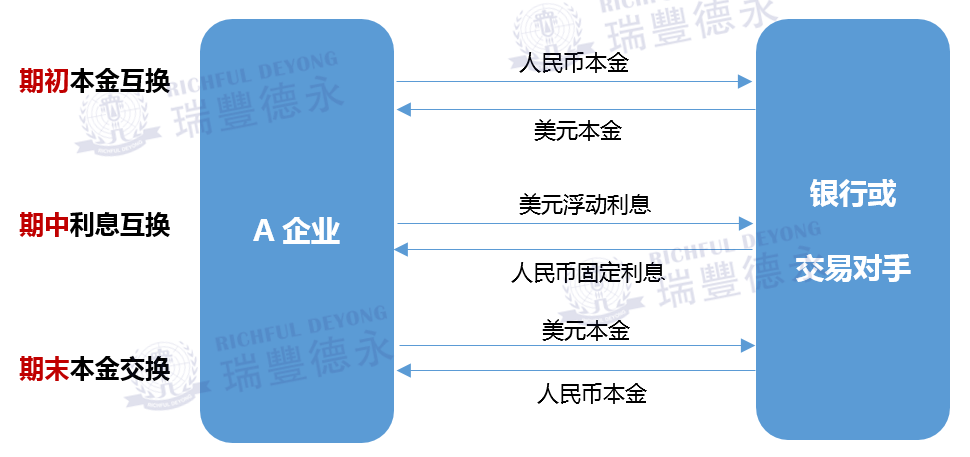 簡單來說這是同時(shí)對沖利率與匯率風(fēng)險(xiǎn)的套期保值工具。在約定期間內(nèi)交換預(yù)定數(shù)量的兩種貨幣本金,同時(shí)是定期交換兩種貨幣利息的交易協(xié)議。