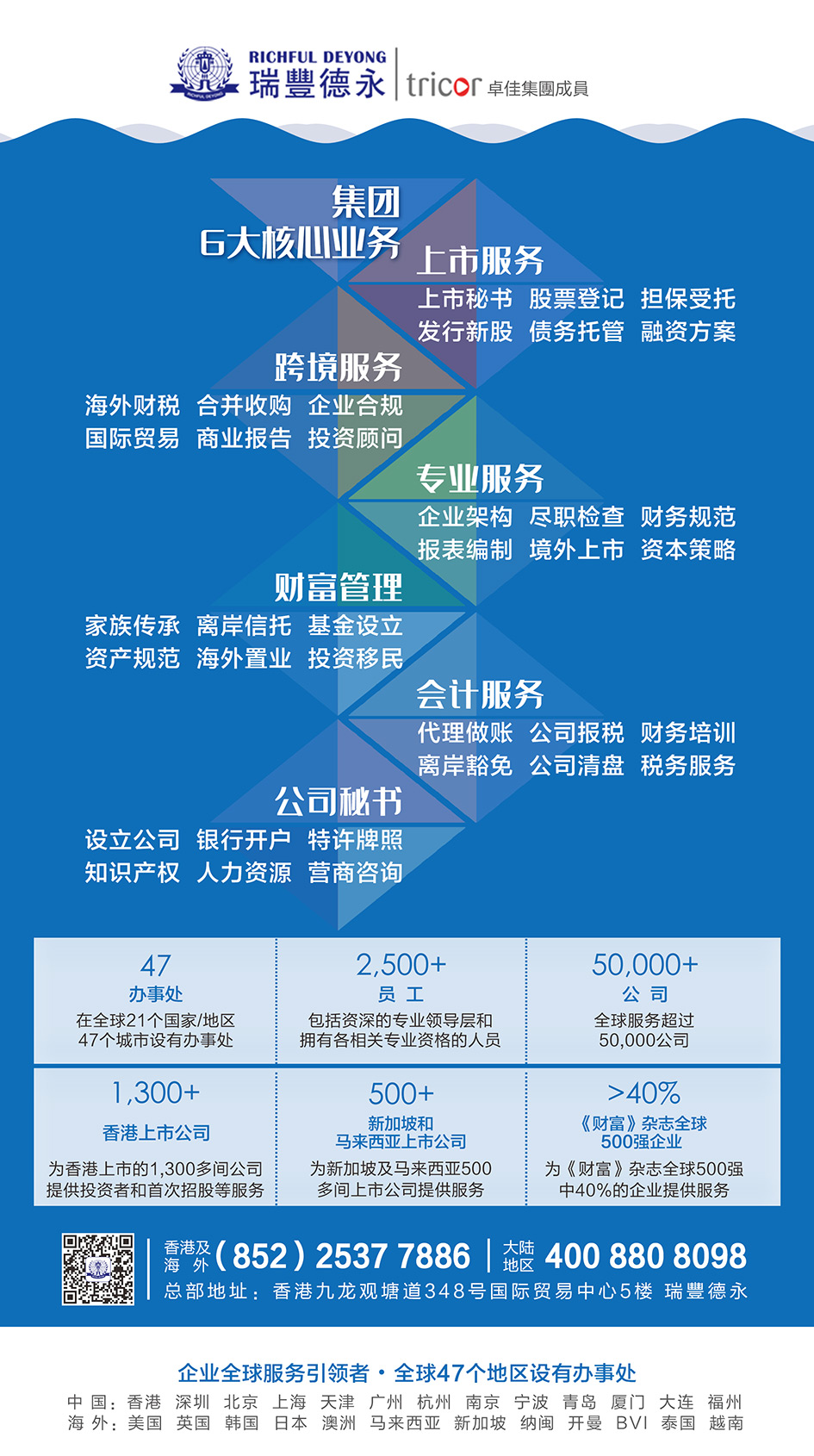 瑞豐德永集團(tuán)直接代辦全球近30個(gè)屬地的離岸公司注冊。