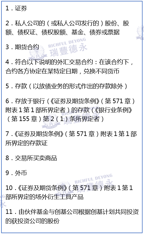 除了建議為附帶權益提供稅務寬減外,財經(jīng)事務及庫務局局長表示,此次立法也會對以私人形式發(fā)售的基金的利得稅制度作出若干改善,以利便基金在香港營運,包括容許基金持有的特定目的實體,可持有和管理《稅務條例》(112章)-附表16C指明的類別的資產(chǎn),具體指: