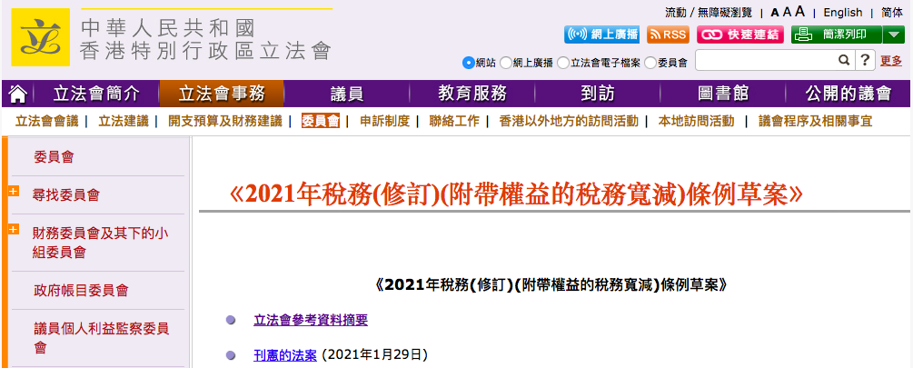 若您想進一步了解以上內(nèi)容,或者您對香港立法會刊登的《2021年稅務(修訂)(附帶權(quán)益的稅務寬減)條例草案》原文感興趣,可聯(lián)系我們進行獲取。
