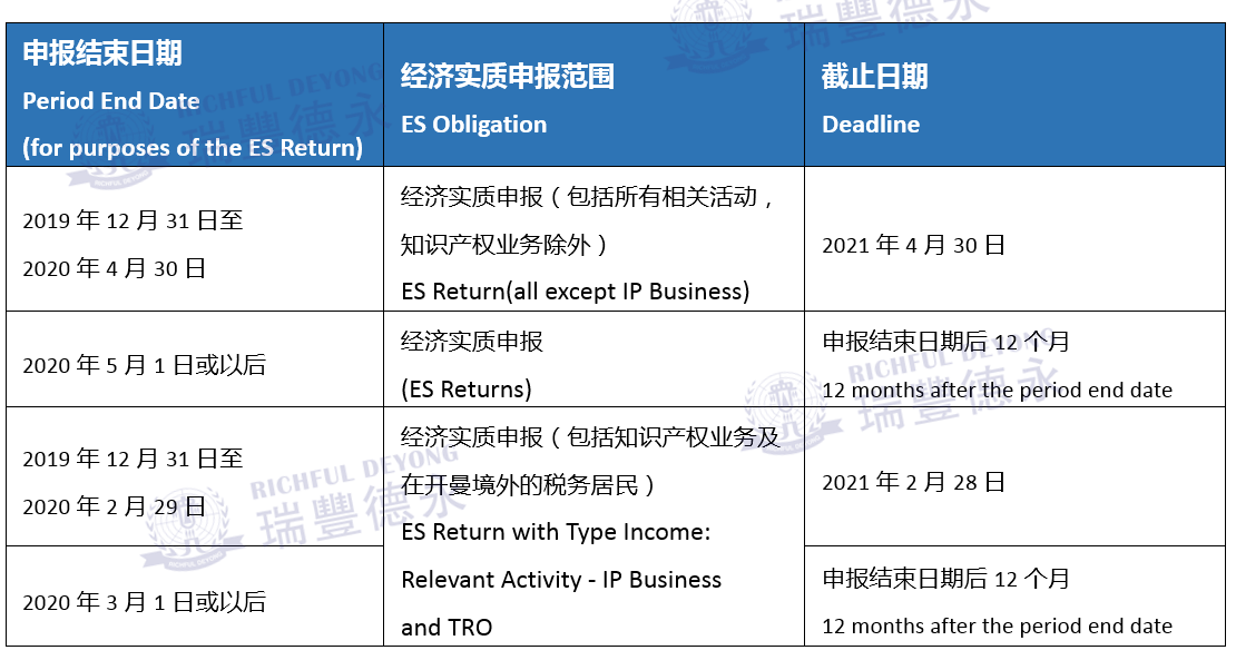 經(jīng)濟(jì)實(shí)質(zhì)申報(bào)表(ES Return)截止日期 - 最新版