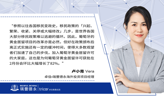 面對葡萄牙2月黃金居留許可大幅增長的數(shù)據(jù),瑞豐德永海外投資項目經理盧小青女士分享了她對當前葡萄牙投資移民形勢的見解。