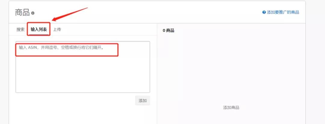 ②輸入列表:此方式,輸入ASIN,并用逗號(hào)、空格或換行將它們隔開(kāi)。