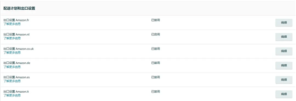4.啟用目的國亞馬遜物流“配送計劃和出口設(shè)置”(【設(shè)置】 > 【亞馬遜物流】 > 【配送計劃和出口設(shè)置】 > “已啟用”);對于從歐盟(德國/法國/意大利/西班牙)到英國的歐洲配送網(wǎng)絡(luò),賣家需要在所有歐盟國家(德國/法國/意大利/西班牙)啟用亞馬遜物流“配送計劃和出口設(shè)置”