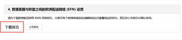 ② 您可以選擇部分商品退出:進入到【亞馬遜物流歐洲整合服務(wù)庫存】頁面,點擊“report”下載“商品狀態(tài)報告”,將部分商品退出歐洲配送網(wǎng)絡(luò)(EFN)