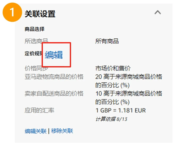 您可以通過:在【建立國際商品信息】頁面右側(cè)的關(guān)聯(lián)設(shè)置 > 點擊定價規(guī)則的【編輯】 > 在下拉菜單中選擇“與來源站點相同,針對稅費和費用進行調(diào)整“來啟用這項自動定價規(guī)則。