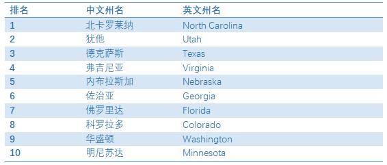 2006年以來,福布斯每年都對美國50個州的營商環(huán)境評分。本榜單的榜首始終在北卡羅萊納(2次)、猶他(6次)、弗吉尼亞(5次)交換。今年是本榜單第13份,研究了6個大類的41項指標。這6個大類是:營商成本、監(jiān)管環(huán)境、經(jīng)濟環(huán)境、增長前景和生活質(zhì)量。北卡羅萊納是唯一一個在所有6個大類的指標中均排在頭12名以內(nèi)的州。