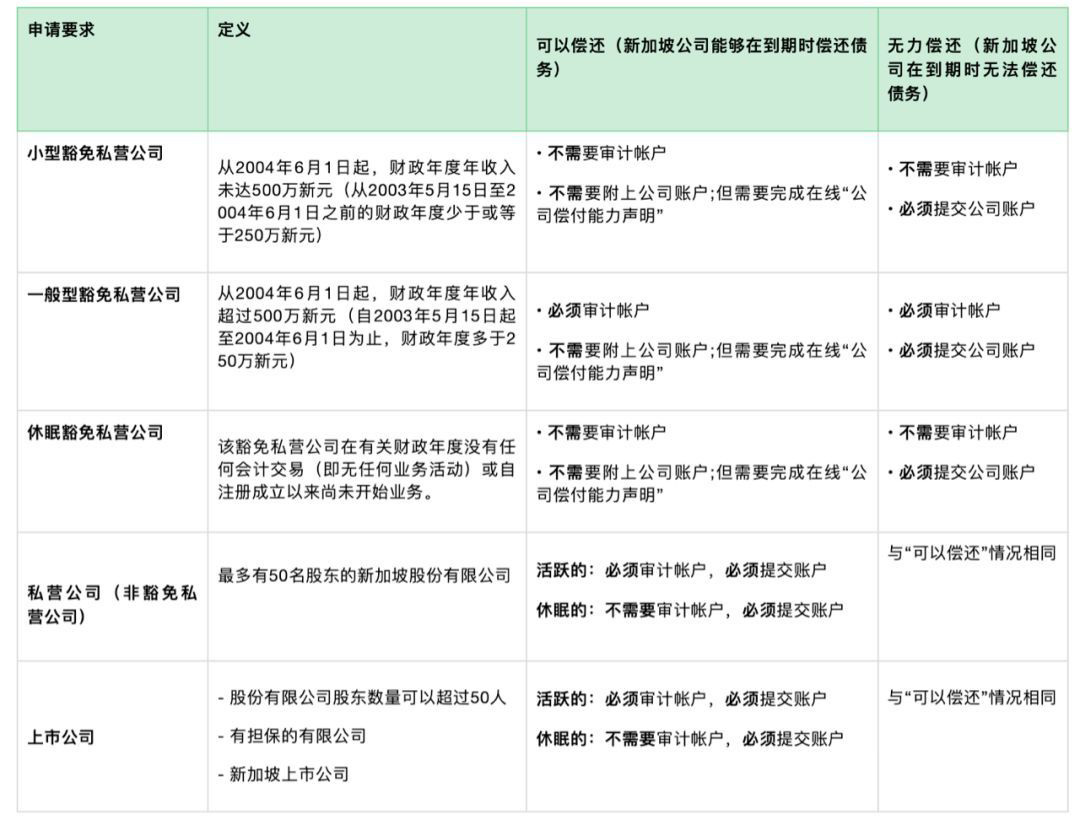 在新加坡,不同類型的本地公司提交年報(bào)的要求不同,總的來講會(huì)分為可以償還(新加坡公司能夠在到期時(shí)償還債務(wù))及無力償還(新加坡公司在到期時(shí)無法償還債務(wù))兩種情況。