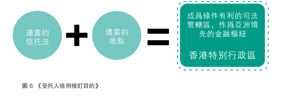 香港信托法的概念源于普通法,雖然因此而廣泛地得到全球商界的認(rèn)可,但同時(shí)也被視為未能配合時(shí)代的發(fā)展,而且缺乏靈活變通。《受托人條例》是香港信托法的法律來源?!妒芡腥藯l例》早于1934年實(shí)施,目的是增補(bǔ)和修訂有關(guān)受托人的普通法條例,內(nèi)容大致上以《英國1925年受托人法》(UK Trustee Act 1925)為藍(lán)本。由于《受托人條例》自實(shí)施以來沒有經(jīng)過大幅度的覆閱和修改,因此大部分的信托法例均以判例法為基礎(chǔ),所以被某些香港信托業(yè)人士視為未能配合時(shí)代發(fā)展。因此2013年,在差不多80年后,對(duì)《受托人條例》提出了建議修訂。《受托人條例》的修訂,會(huì)使香港成為條件有利的信托地點(diǎn),讓香港憑借其作為國際金融中心的優(yōu)勢(shì),在國際舞臺(tái)上保持競爭力。這次修訂使得香港信托法更趨近現(xiàn)代化,以應(yīng)對(duì)例如英國和新加坡等主要的普通法司法管轄區(qū)最近進(jìn)行的信托法改革,并提升香港作為國際資產(chǎn)管理中心的地位。