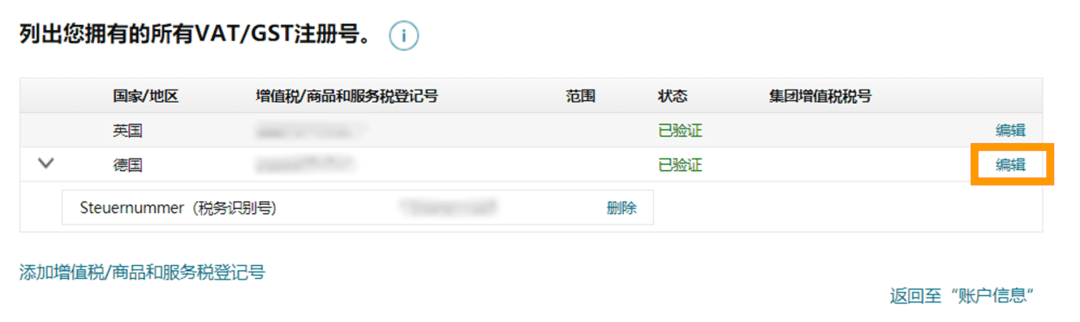 ② 單擊關(guān)聯(lián)的增值稅稅號(hào)旁邊的“編輯”按鈕;