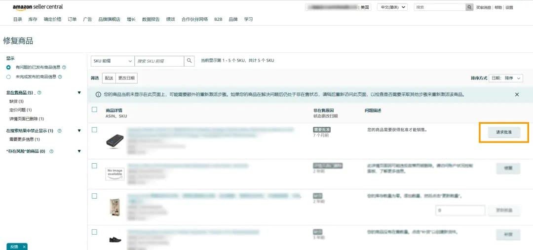 ③ 這會(huì)將您引導(dǎo)至郵件通知中提供的修復(fù)商品頁面,您可以點(diǎn)擊對(duì)應(yīng)商品的“請(qǐng)求批準(zhǔn)”按鈕;