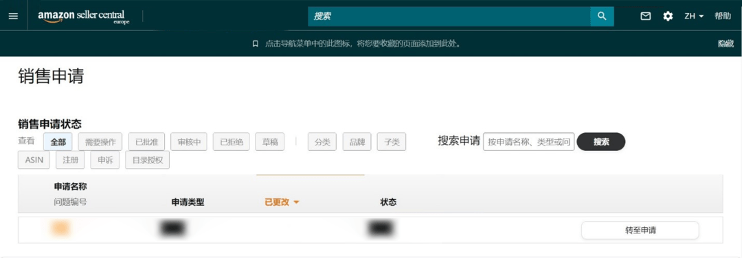 ④ 您會(huì)被引導(dǎo)至銷售申請(qǐng)頁面查看申請(qǐng)狀態(tài)。