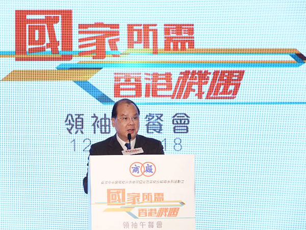 由香港中華廠商聯(lián)合會(廠商會)主辦的“國家所需香港機(jī)遇”領(lǐng)袖午餐會12日在香港金鐘舉行。會議云集200余名工商界及社會領(lǐng)袖,共同回顧香港工業(yè)界參與國家改革開放的歷程,并前瞻香港在未來國家發(fā)展大局中的角色。