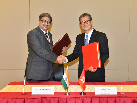3月19日,香港財政司司長陳茂波代表香港特別行政區(qū)政府在香港與印度駐華大使Gautam Bambawale簽署全面性避免雙重課稅協(xié)定(全面性協(xié)定),標(biāo)志著特區(qū)政府在擴闊香港稅收協(xié)定網(wǎng)絡(luò)方面繼續(xù)取得成果。
