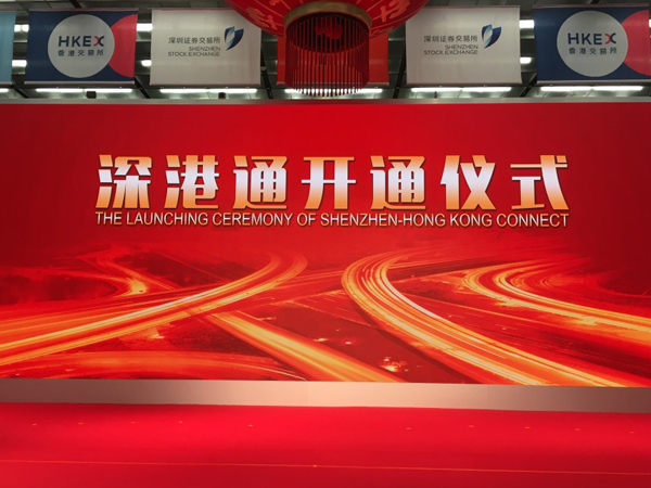 12月5日上午,香港交易所舉行“深港通”開通儀式,香港特區(qū)行政長官梁振英與香港交易所主席周松崗在港交所共同為當(dāng)日首筆交易鳴鑼開市,標(biāo)志著“深港通”正式啟動(dòng)。