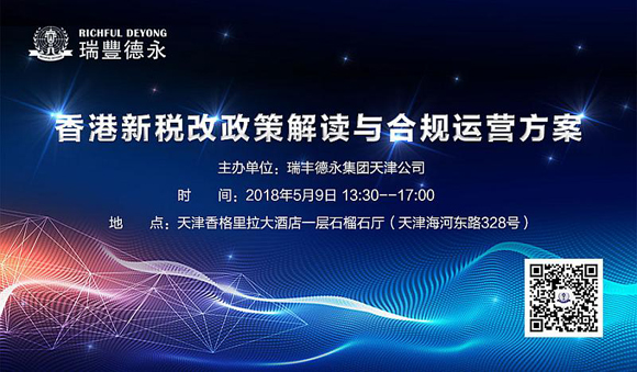 2018年5月9日,瑞豐德永將在天津舉辦“香港新稅改政策解讀與合規(guī)運營方案”專題研討會,特邀專家為您全方位解讀稅改新政,從法律和稅務的專業(yè)視角,真正幫助企業(yè)家理解新政背景下,實現合法合規(guī)經營的稅務籌劃正確之道。