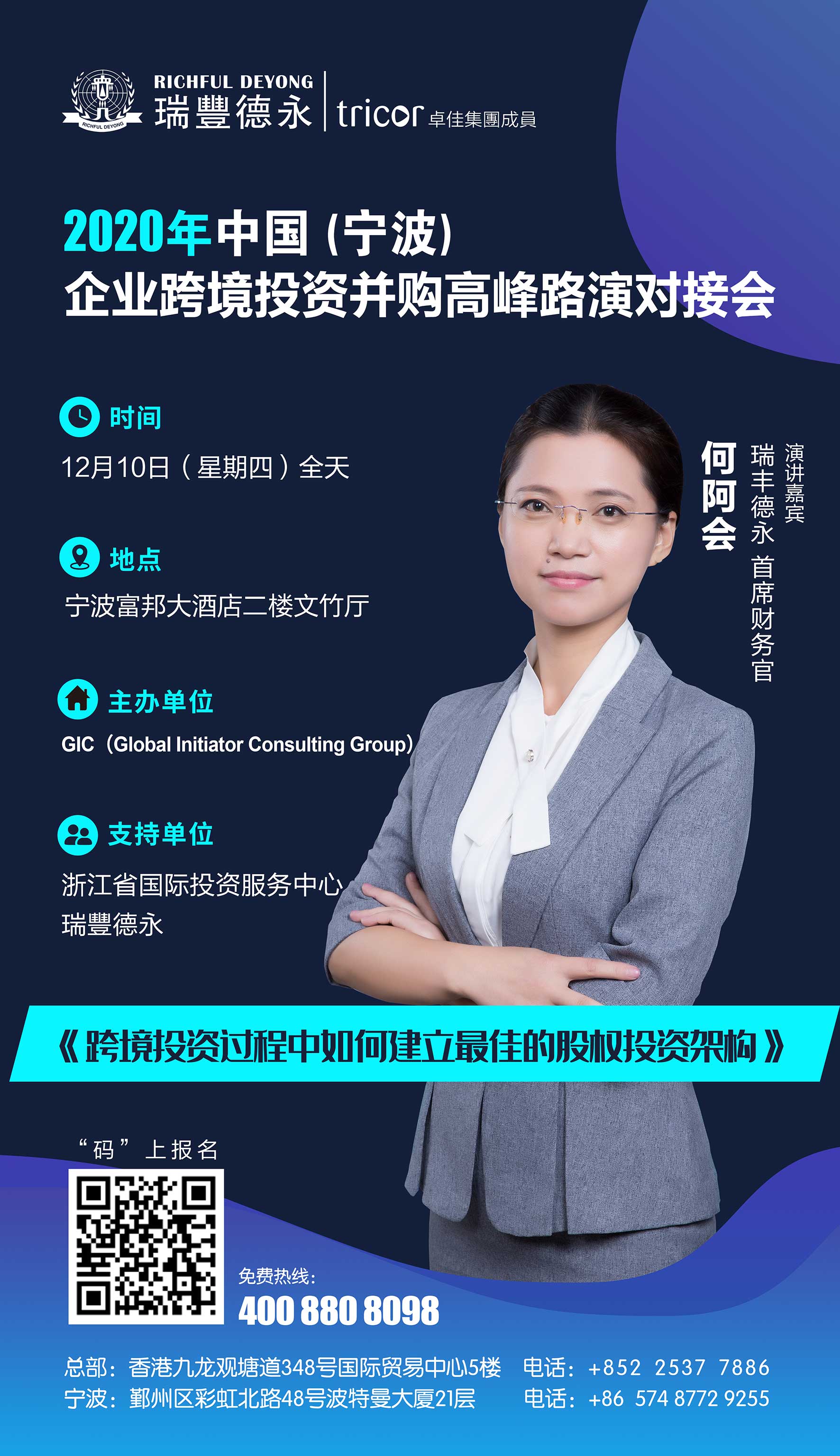 12月10日「2020年中國(寧波)企業(yè)跨境投資并購高峰路演對接會」將在寧波富邦大酒店舉辦。…
