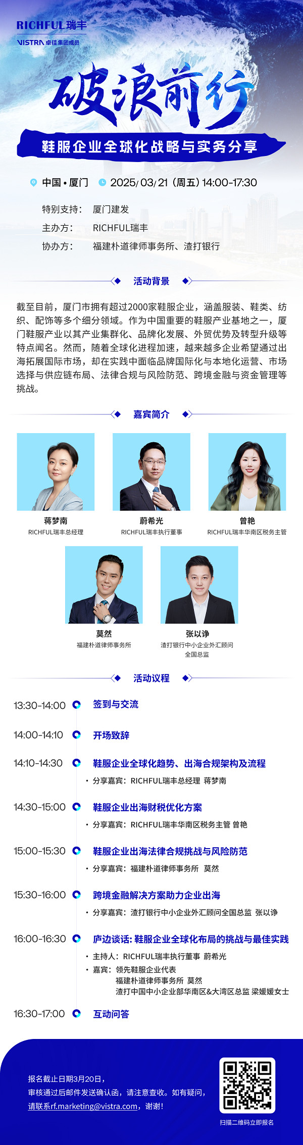 邀請函 | 3月21日 廈門 | 破浪前行——鞋服企業(yè)全球化戰(zhàn)略與實(shí)務(wù)分享…
