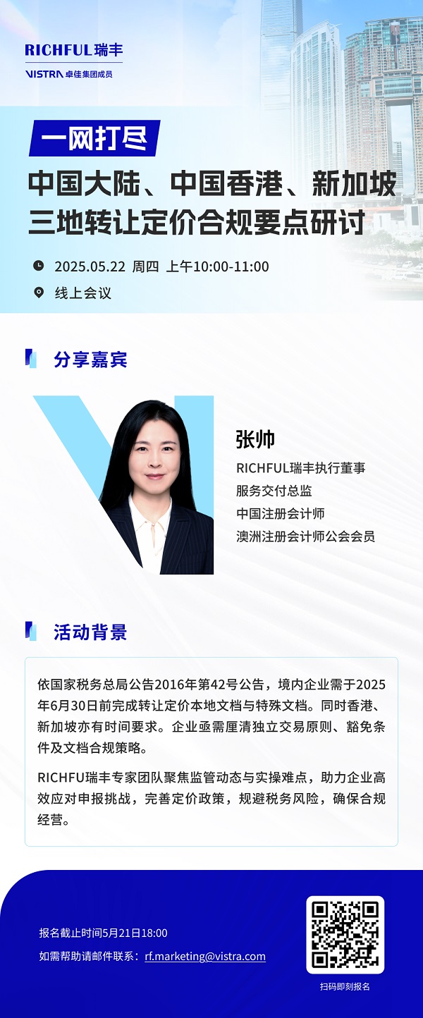 5.22直播預(yù)告 | 中國(guó)大陸、中國(guó)香港、新加坡三地轉(zhuǎn)讓定價(jià)合規(guī)要點(diǎn)研討…